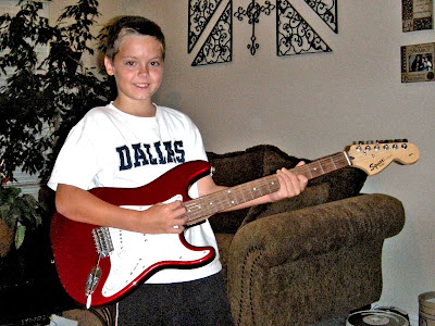 Tonight we had a little family celebration. We're going to have Austin's party with his friends in a few weeks. But tonight we gave him his big present. Oh yes ... an electric guitar. We must be crazy! But he is so excited. And the amp has a headphone jack so maybe it won't be THAT loud at our house! RIGHT!